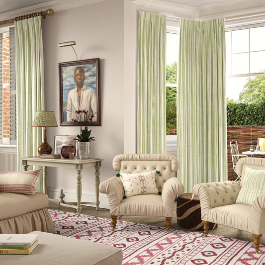 Regular price £190.00 p/metreRegular priceUnit price / perp/metreSale price £190.00 p/metreBatik Stripe Pale Green Sample