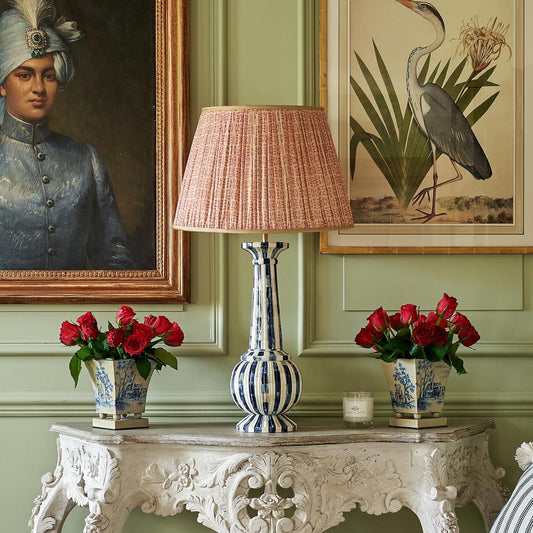 Regular price From £420.83Regular priceUnit price / perSale price From £420.83Blue Flower on Cream Pleated Silk Lampshade with Pink Trim